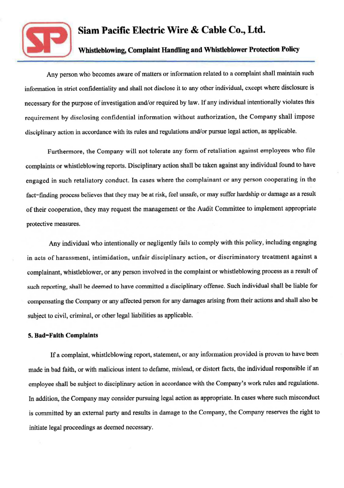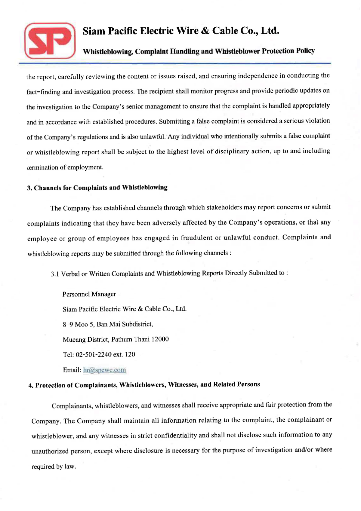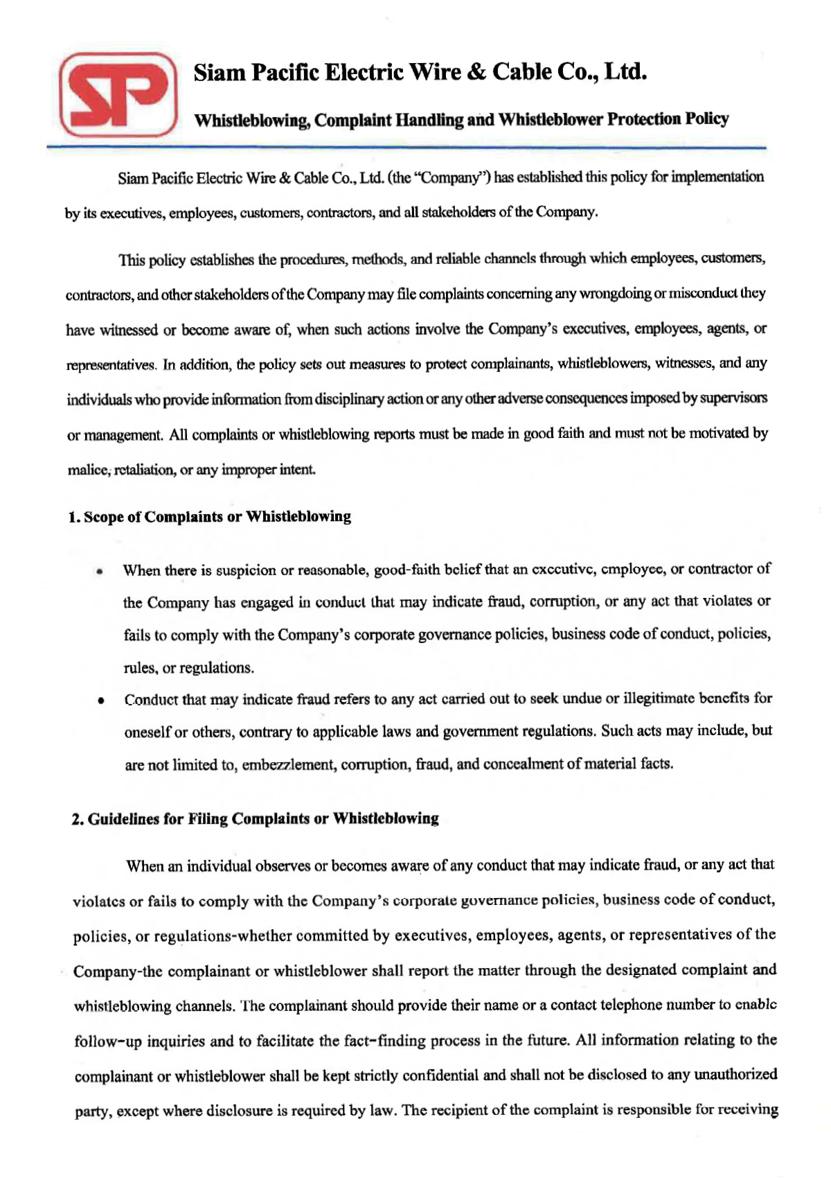 Whistleblowing, Complaint Handling, and Whistleblower Protection Policy