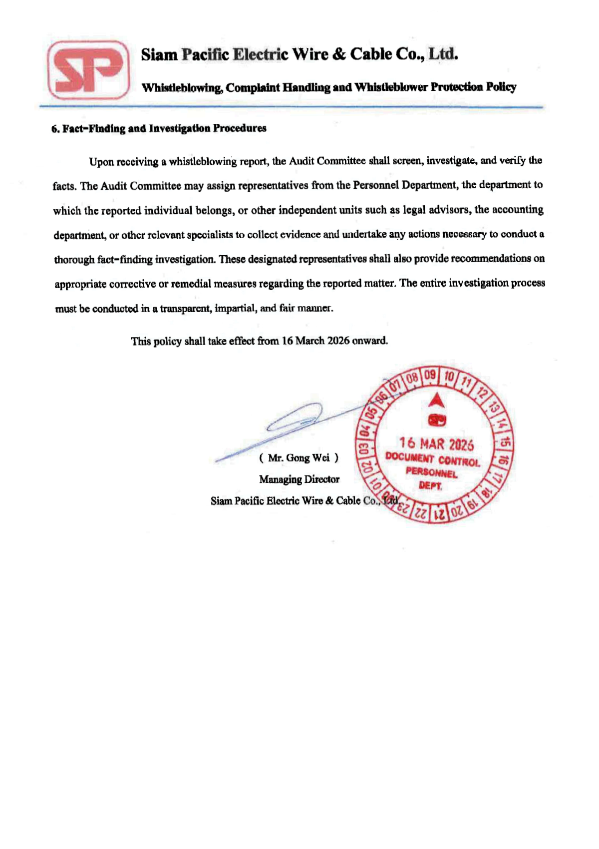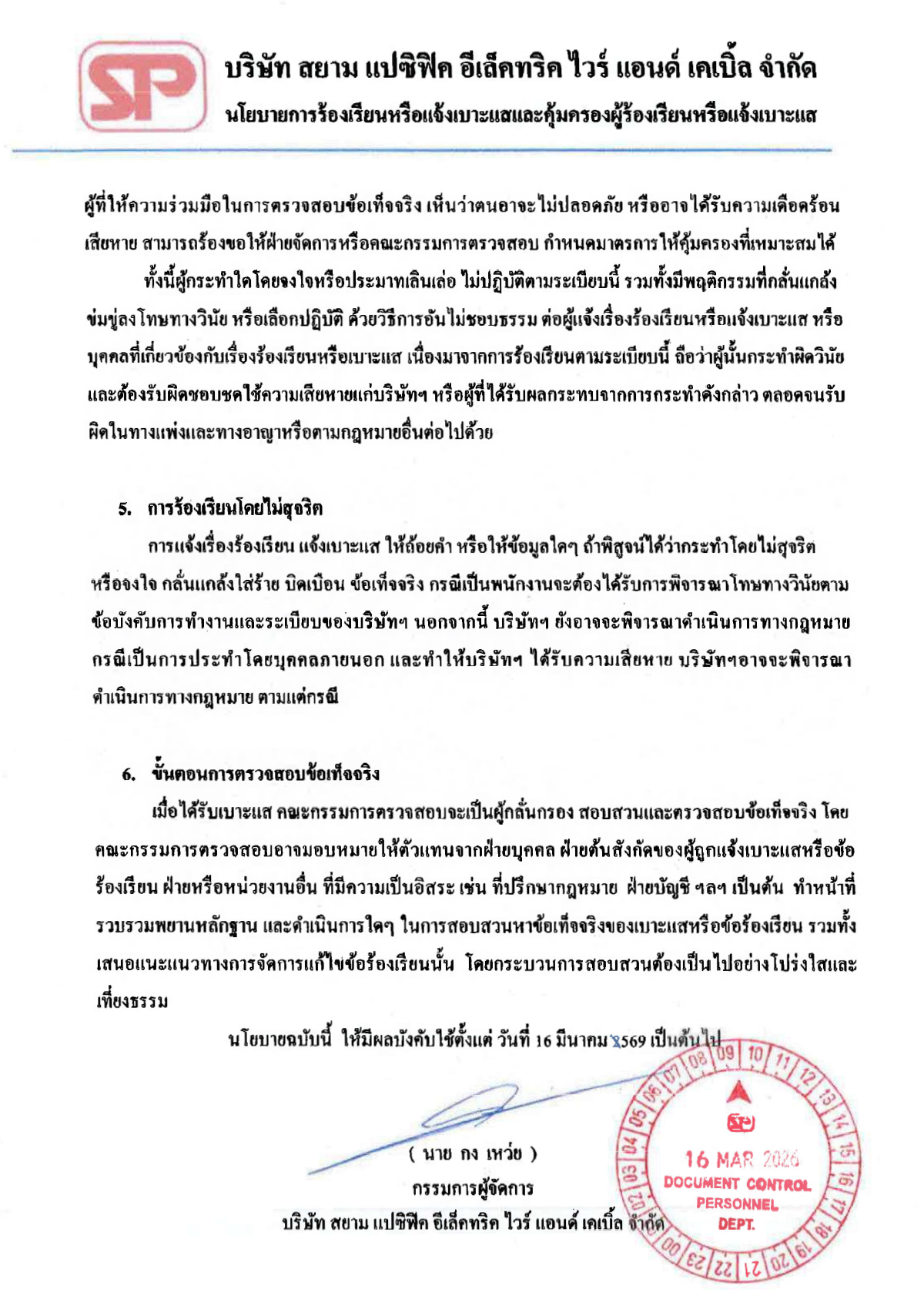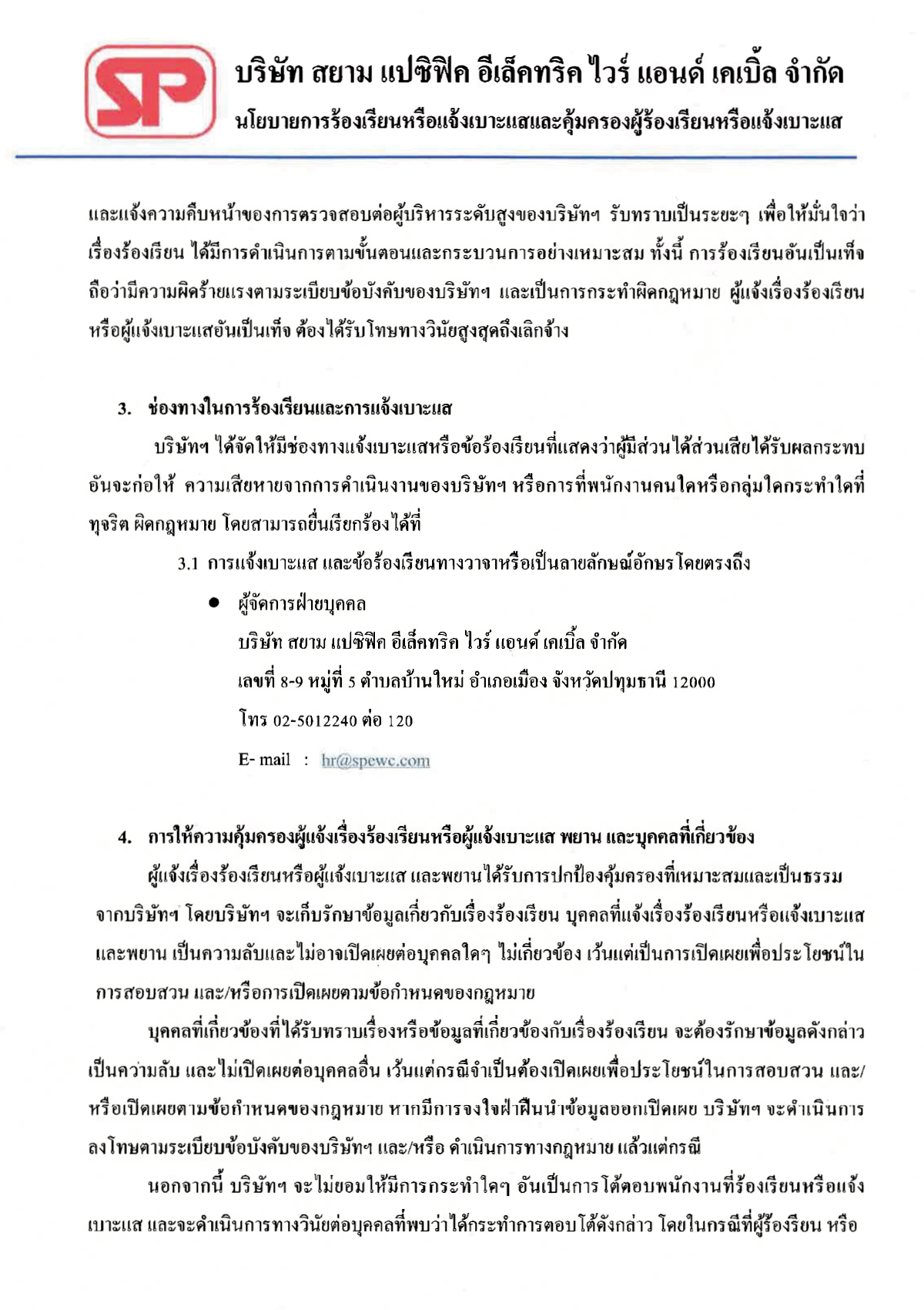Whistleblowing, Complaint Handling, and Whistleblower Protection Policy